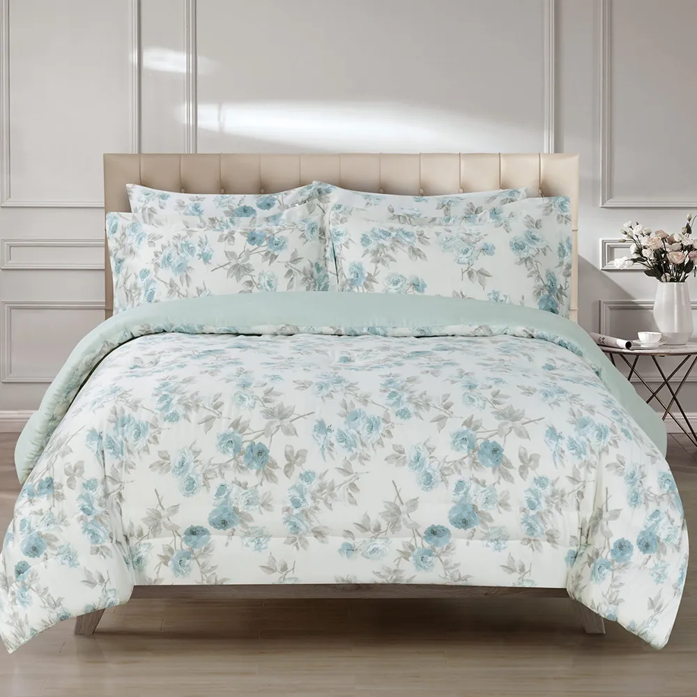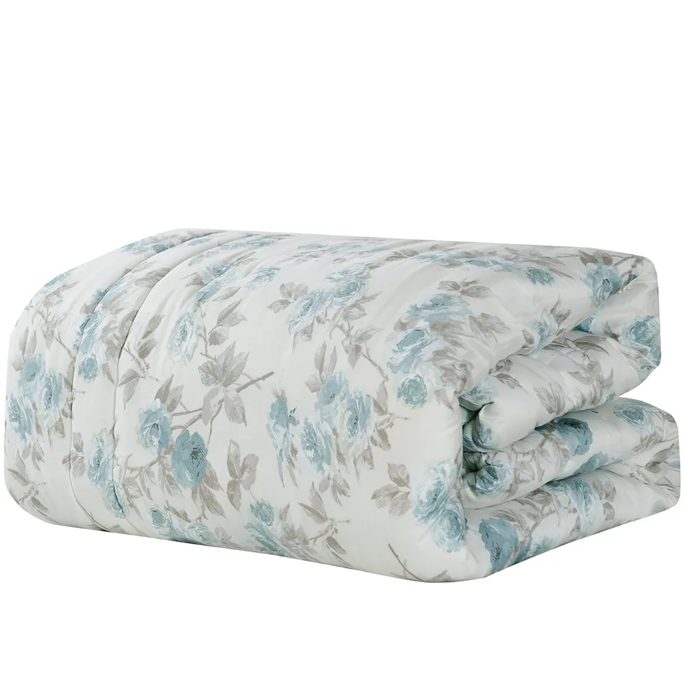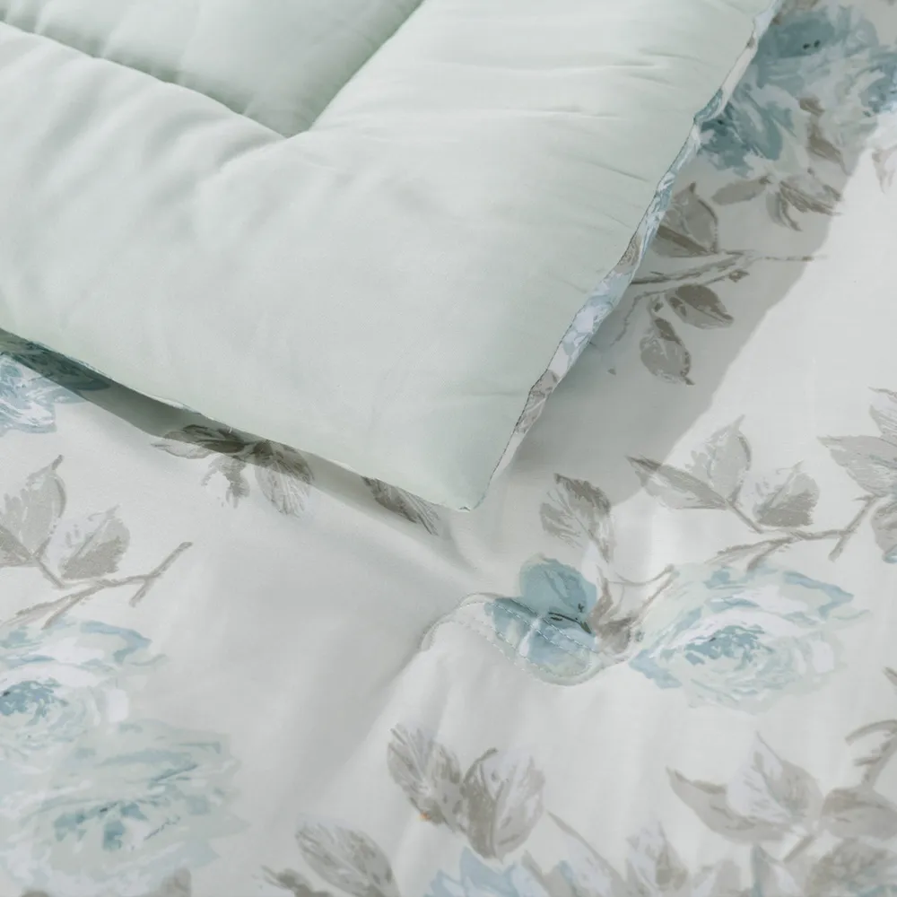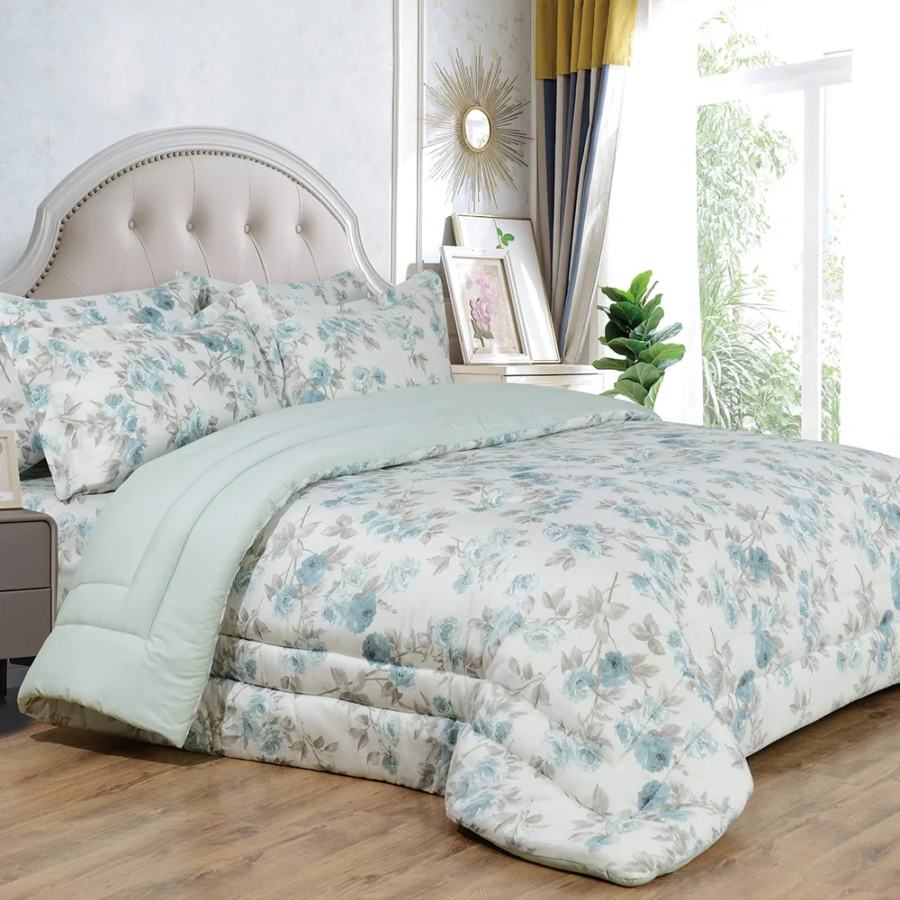 Immerse yourself in the rejuvenating comfort of our cotton sateen comforter set. This 100% Egyptian cotton comforter set keeps you comfortable year-round, transforming your bed into a haven of tranquility. Egyptian Cotton, renowned for its exceptional quality, is among the world’s finest. Beyond its sumptuous softness, its long-staple fibers ensure lasting durability, resisting tearing and piling. The Eglantine set features a unique floral design with elegant flowers and leaves. The fresh yet subdued colors evoke tranquility and renewal, while the charming florals add a touch of timeless sophistication.