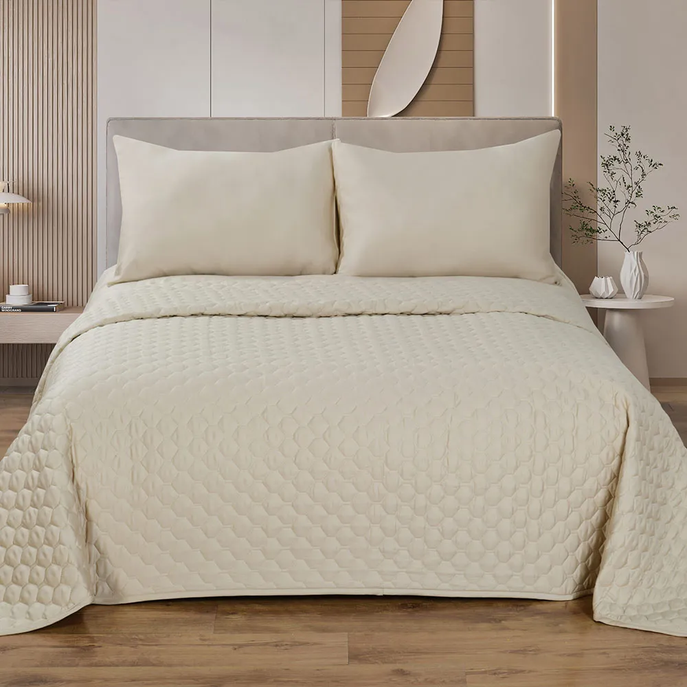 Immerse yourself in the rejuvenating comfort of our cotton sateen bedspread set. This 100% Egyptian cotton bedspread set keeps you comfortable year-round, transforming your bed into a haven of tranquility. Egyptian Cotton, renowned for its exceptional quality, is among the world’s finest. Beyond its sumptuous softness, its long-staple fibers ensure lasting durability, resisting tearing and piling.