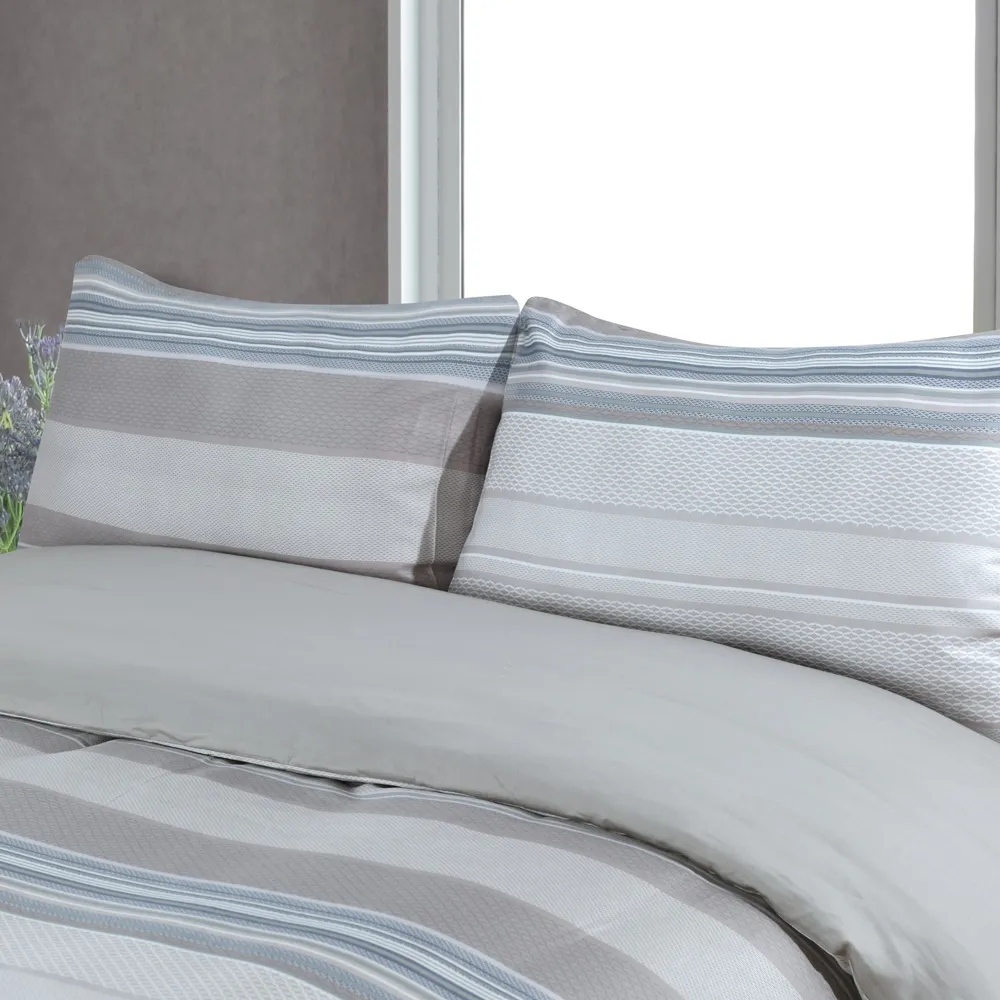 Indulge in the ultimate comfort of our Sorento Egyptian Cotton Sateen Pillowcase Set. These easy-care pillowcases are the perfect addition to your bedding collection. Egyptian Cotton, renowned for its exceptional quality, is among the world’s finest. Beyond its sumptuous softness, its long-staple fibers ensure lasting durability, resisting tearing and piling. The Sorento pillowcases harmoniously blend muted colors in a horizontal stripe arrangement. The design evokes a relaxed and calming color scheme reminiscent of the tranquil serenity found in a summer sky.